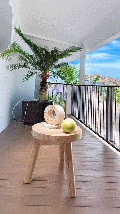 棚は四角の固定観念を捨てて作りました。鉢を置くのに便利です。