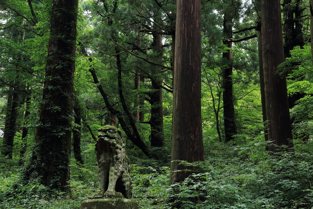 ①「見張る」 撮影地=鳥取県大山町・大山寺 山間部を見張る狛犬 撮影期日=2013年9月6日