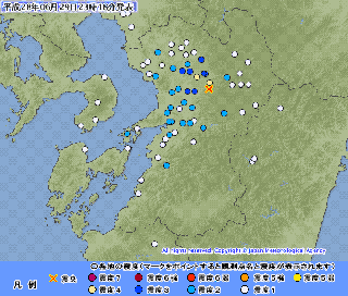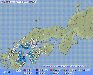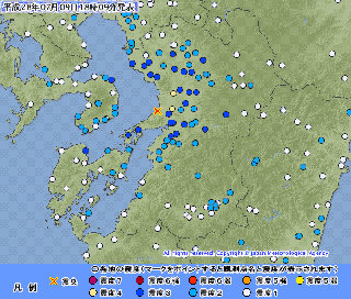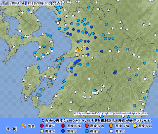 <地震>今日は午後から南から北まで全国各地で揺れている。熊本ではまだ3回、震度2が2回、震度1が1回。