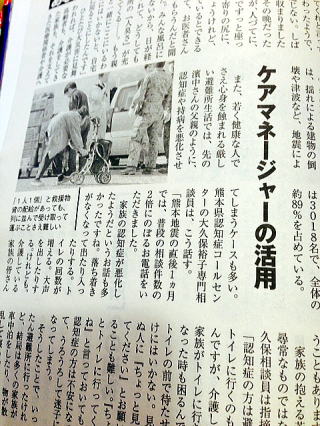のケアマネージャの活用という欄・・を見ていたら夜学の同窓(職場も)の言葉が載っていた。