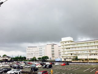 2016年6月22日(水)  雨はまだ降るらしい。九州は狙い撃ちだ。雲が西から東へ高速で進んでいく。黒く厚い雲だったり薄雲だったり、続々と目の前の病院の向こうをさっさと飛んで行く。