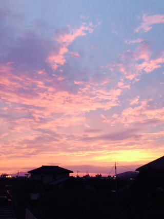 今日の夕焼けはとても綺麗だった。5,6年くらい前になるだろうかニュージーランドには夕焼けがないと言っていたけどほんとかな?現地のガイドさんは、ちりやゴミに屈折した光があたって夕焼けに色がついている・・だからニュージランドは清潔だから夕陽は赤くならないという論法だったかな?ウソかもしれないが俺は真に受けたぞ。ウソだったら大人を騙すんじゃないメッツ!