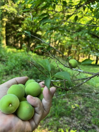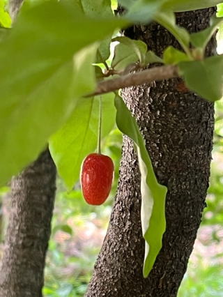 | 2022/05/29日 | グミが赤くなっている。最初は1個かと思っていたが、今日になって3個のグミの実ということを発見。それでも昨年の今頃はグミは豊作だった。鳥に先を越されないように人間様が口に入れた。2021/05/14金 の日記では皿いっぱい収穫している写真がある。やっぱり日記は確認用で役に立つ。春先には白梅の花びらと赤い桜の花びらが紅白に対比して綺麗だったがその片方の白梅の古木の枝には1kg近くの梅の実がついていた。毎年数個の実しか見つけられなかったのが今年はグミの正反対で豊作だ。 小さな脚立に立って青梅をちぎった。収穫はいつも気持ち良い。特に何の手入れもしてない木の実は格別だ。 |