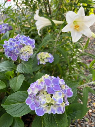 | 2022/05/30月 | 紫陽花が綺麗に咲いた。雨と友達という雰囲気だ。同じ場所に咲く花の色が違うのが面白い。同じ茎の枝違いでも花の色が違ったりする。6月に入ったら梅雨入りするし、6月21日は夏至になる。今朝から山鹿へ梅の実を貰いに行った。帰り道には梅干を漬ける容器や砂糖に梅酒用焼酎を追加購入。帰宅後一生懸命梅の実を2種類に仕込んでいた。7kgの梅干しとあとは梅酒だから楽しみだ。夕食時のホット梅酒は特に美味しいから今から期待が大きい。この梅の加工には大量の氷砂糖と大量の塩が必要で健康の大敵なのになぜか出来上がりが大好きなのだ。 |