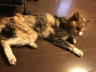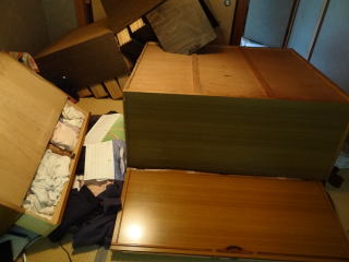{猫に生かされて} 2016年4月16日のあの日には・・この老猫に誘われて命拾いをしたのだった。今日もチャメの具合悪い。ご飯食べずに、人の側にきてはごろんと横になる。起きているときは居場所がないような仕草で家の中をウロウロしている。食べる元気もなさそうだ。口の中も口内炎があるのか涎が続く。この猫に震災では救われた。猫がいたので西原村の山小屋から本震4時間前に帰路についたことは何度か書いた。あの時,もし山小屋にいたら大きな箪笥の下敷きになっていたのは間違いない。前震で変な声を出して家出していたので・・そろそろ帰って来るかなと帰った金曜日の夜。車を駐車場に いれていると暗闇からこのチャメが現れて一緒に家の中に入ってそして土曜日になっての本震となった。・・この一連の流れがなかったら大変なことに巻き込まれていただろう。生きているかも確証がない。たぶんどうしようもない結果になっただろう。下段写真が当日の寝ていたはずの和室の状況・・力持ちの大人2人でも起こせなかった箪笥がゴロリ。奥の箪笥には別の小物箪笥の引き出しが突き刺さっていた。あとでぞっとした。<地震>揺れが異常に少ない、雨の後ドカンとくるぞ・・!ご用心!! 17時08分 三陸沖 M4.3 震度1 16時44分 三陸沖 M4.4 震度1 06時24分 青森県東方沖 M3.4 震度 |