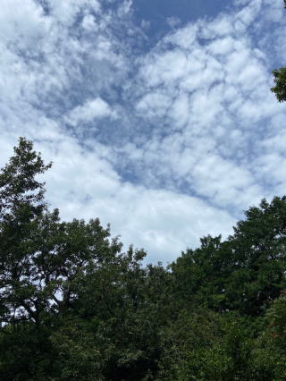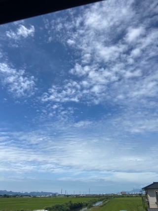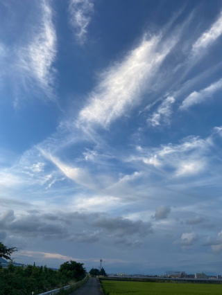 2021/09/01水    今日から9月、昨夜はなんとかKSNだより9月号発行が内容はともかくも間に合った。少しホッとした。友の会だよりの校正もZoomで午前中完了、肝心の4コマが未提出だったが、夕刻に田んぼ道散歩中になんとか送ったと画伯のメールがきて安心した。明日はお礼の品を持参しなければと思う。もう正月号用の4コマを考えて置かねば間に合わないかなと思う午後7時・・バトンタッチしてご主人様が公園へ歩きに行った。今日はほとんど一日中自宅でああでもないこうでもないと視野の狭い暮らしをしていた。田んぼの草も激しい成長でニョロニョロを踏まなかったのが幸いだ。散歩の歩数4661歩。あと400歩は猫と遊ぶとするか。    ちょっとだけ秋の空になった。室温29.2度・・今年もあと少し、冬至まで僅か三ヶ月。時の早さにずっと後れる精神。まだ真夏の気分が続いている。