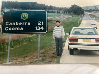 30歳頃:オーストラリアでは2人でレンタカーを借りて、交互に運転。シドニーからキャンベラへの小旅行。 (さてどこかに記録があったろうか。) 今と違って髪の毛が真っ黒だ。37年も昔のことだ、性格と根性なしは変わりはないが髪の毛は、すっかり変わった!・・