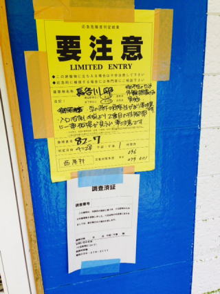 私の山小屋は農業用溜池 大切畑ダムのある阿蘇郡西原村小森、袴野部落、ここはずっと手前から通行止めになっていた。大阪府警から支援で来ていた地理にも不慣れな若い警察官に「この先の小森袴野地区に行きたい」と言うも、熊本弁が聞き取れないらしく大阪弁で「直進は出来ない」「バックしてセブンイレブンから左折して南阿蘇方面に行ける」・・ここで押し問答してもしょうがなく「はい」と答えて、引き返し、なんとか裏道で進もうと探す。偶然 前の車が一台方角なら合っているのにつられて曲がった、この道沿いの家もほぼ屋根の瓦がなかったり、家の一部が転がってたり、傾いていたりしていた。