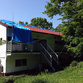 | 4月29日(金) | 今日は晴天、昨日までの雨が止み、 西原村の山小屋が気に掛かる。早く屋根にシートをかぶせておかないという想いが強い。今しかチャンスがないと奮い立つ。明日を予定していたが山で一緒に暮らしたすべてがこのまま朽ちるのは可哀想。朝から準備にかかるがなかなか進まない。 現場まで行けるかどうかも分からないがあがいてみることにする。体力が落ちてしまった。少し動くと休みたくなる。大丈夫かな。午後に出発 帰ったらこのページ書き換えするか。と書いて、西原に行ってきた。ブルーシートの長さ36m 長いので準備が大変だった。左右の土嚢も必要。スルスルとナイロンテープを地上に降ろして妻に結わえてもらった。その土嚢と結わえたナイロ ンロープを切って(だから段々短くなる)それをブルーシートの穴やにわか作りの引っかけコーナーに結んで出来上がる。全て自己流だから何日持つやら分からない。2階の屋根から落ちると天国は間違いない。揺れが来ない間にとこころはやる。でも一度立ち上がるとなんとかなるものだ。怖さも半分になって移動出来た。「どうにでもなれ」という心境だった。下では近くの民宿のひろせさんの親類の女性の方が来て地震話に花が咲いていた。「庭の岩が落ちた」と騒いで手伝おうとすると邪魔になると言われたらしく、そんな会話がとりとめもなく続く。未曾有の熊本地震の渦中でも肥後の女性は明るいし強い。18時30分まで屋根の上で作業を続けた。日が沈み、まだ少し修理箇所を残して降りた。帰り道は疲れと充実感に満ちていた。 この日記を書いてる29日23時26分か・・今 大きな揺れがきた。近くだろうか???震度4以上だな。と倒していたTVで確認してみると・・震度3とテロップが流れている。23時27分:目測あやまりかなあ??マグニチュード3.9かたいしたことないなあ でもよく揺れた。今夜の揺れはこれで終わりにしてほしい。 *写真は西原村の山小屋に咲く震災薔薇(長谷川櫂さんが送ってくれたドイツの薔薇:震災瓦が赤く後ろで引き立てる) |