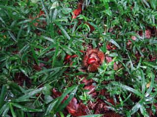 | 2016/9/15(木) | 今日の空・・・小腸Ba透視したあとのような雲公園の草むらに白いキノコ・・草の子か? 朝の散歩は汗が出るほど陽射しが強かった。終了後のかき氷がおいしく夏の気分だった。 昨夜は市内は大量の雨降り。午後心配性の私は西原村の山小屋のブルーシートのズレで雨漏りしなかったか確認に出掛けた。結果はOK、直接の漏れなし。先ず安心。一人でいったので気分的に楽だった。袴野の道路に大きめな工事用トラックが往来するので慎重運転で、確認しながら前進しないと、ぶつかりそうで、気づいたらバックしないといけなくなる。早く2車線のバイパスが出来上がればよいのだが、まだまだ完成までは時間がかかりそうだ。路端に彼岸花が咲いていた。 雨漏りの心配のあとは裏山の栗拾いをした。草が生えている上に落ちるので、探すのが面倒だった。まあまあ取れた。次回は台風の後の予定なので沢山取れるかも。 <地震>7時台八代、18時台西区を中心の震度1が2つだけ。(19:50現在) |
