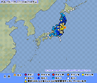 | 2016/11/22(火) | 朝起きて目覚めの中Facebookをあけてみると、動画を見てとIsabelさんからスペイン語での招待あり、あれなんか見たような5年前の画像?それにマグニチュード7.3で津波上昇中とあって1時間前のアップとある。今頃なんでと・・もしかしてまた東北で地震あったのかとTVのスィッチをいれるとホントだ!今朝揺れたんだ。でも陸地は震度5弱・・まだ続くだろう。 22日08時40分頃 福島県沖 M4.6 震度3 22日08時23分頃 福島県沖 M4.7 震度2 22日06時51分頃 福島県沖 M4.9 震度3 22日06時46分頃 熊本県熊本地方 M2.7 震度1 22日06時39分頃 福島県浜通り M5.5 震度3 22日06時21分頃 三河湾 M3.3 震度2 22日06時10分頃 福島県沖 M5.4 震度3 22日05時59分頃 福島県沖 M7.3 震度5弱 22日05時59分頃 福島県沖 M7.3 震度5弱 22日03時25分頃 福島県沖 M4.6 震度2 朝から地震が続いている。熊本の揺れが霞んでいるが・・又揺れたので日記続けることにした。 <地震> ・・ということで福島沖を震源とした揺れは19:30までに42回。熊本関係では小川、阿蘇、八代を震源地として震度2が1回と震度1が2回あった。不思議なことにそれまでの常連地域の揺れはすっぽりと抜けているみたいな現象。 <暮らし> 孫らは八代妙見祭で夜7時過ぎに帰った。また明日には帰ってくるのでほんのチョットの休憩時間。有意義な一日を過ごしたい。「八代も地震に注意!」と言って送り出した。 |