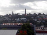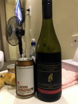 地元の安ワイン、ビールなど買い宿で飲む。これもまあま美味い ![]() 右奥の煉瓦色の建物がオークランド での宿。何もないが静かな場所だった。 |