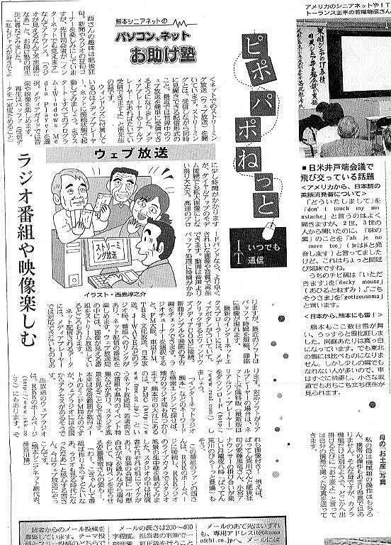 熊日新聞  2002年4月〜2003年3月  ピポパネット「熊本シニアネットのPC・NETお助け塾」 1年間連載