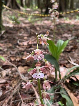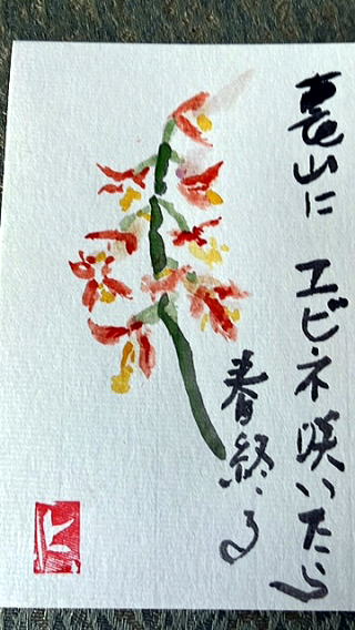 2023/04/07金   俵山裾野の裏山にはエビネの花が咲いた、つい先週はまだ蕾だったのがちゃんと花弁が開いた。毎年楽しみにしているが、今年は黄色のエビネがまだ見えない。昨年、キルト展開催終了後に、エビネの茎を守るための柵が役立って踏まれることもなく、今年も花をつけた。よく季節を忘れないものだ。近くの檸檬の木は冬が寒くて枝が枯れたかと思っていたが、青い枝の先に小さな小さな葉っぱの子どもが生まれていた。枯れずによかった!。下界から登ってくると植物の変化が面白い。わずか数日で、がらり変わる。三日見ぬ間の桜かな・・って。