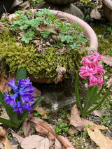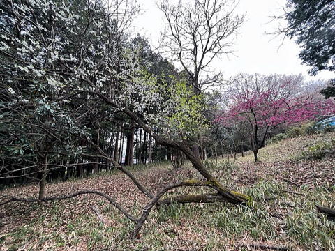 根っこが弱く、数年前に横倒しになったプラムの木。ちょっと酸っぱいので真剣に食べたことがない、その真っ白な花の隣に真っ赤なカンヒザクラが咲き誇る。このペアを眺めると「赤い花白い花」という歌の歌詞が懐かしい。その他、庭にはヒヤシンスのピンクと青のペアで咲く。3月の庭は色とりどりの花でいっぱいだ。裏山散策で6725歩になった。