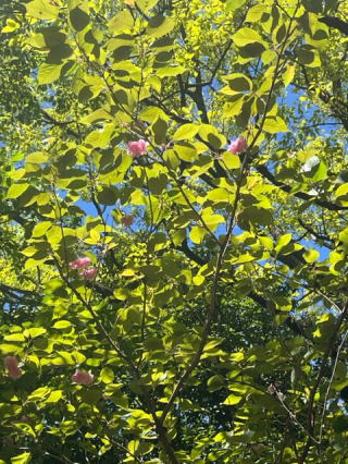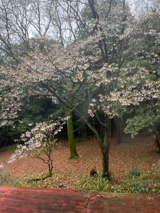 2023/04/08土    森の中はすっかり緑一色。あっと言う間の変化に圧倒される。今日は早めに裏山散策。風が冷たい一日だった。夜はコタツをいれながら石油ストーブを焚く。春にあいては肌寒い夜が続いて居る。庭の大木はすくすく育ちすぎて、提灯桜が少しだけ咲いている。今週はエビネランを観にくるお客様あり。来週くらいまでは大丈夫のようだ。