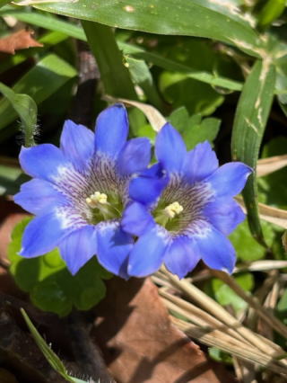 2023/04/01土    朝には花が咲き、昼過ぎには花を閉じて全然どこにあるのか分からない。この季節だけの春リンドウの花咲き風景。