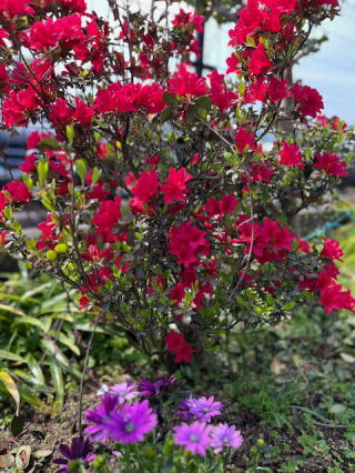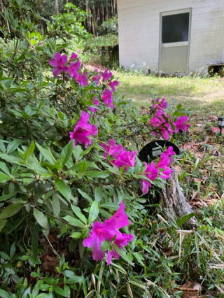 震災屋根瓦の並ぶ、庭の片隅にツツジが綺麗に咲いた。