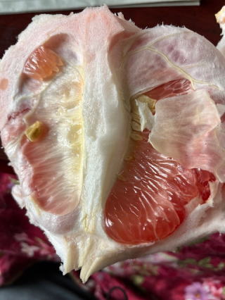 | 2023/02/18土 | ポメロというザボンにそっくりの見立て、中身もそのままの大玉をいっぱいもらった。・・味も変わらない。文旦(ぶんたん)と交配されて1985年に登録されたそう。ご主人様と半分ずつ食べたらもう腹一杯。食べた後今にも雨がふりそうな田んぼ道へ散歩に出て4885歩。帰宅後昼食。その後新聞切り抜きを継続。今日も大した収穫はない。猫のハナは若いシマシマの野良が窓の外に見えたので(猫は鳴くといはいわないかな)、あっち行ったりこっちへきたり、家中の窓辺へとウロウロして落ち着かない。相手は全然気づかない、ああ可哀想に。要らぬことに髪の毛がまた伸びて邪魔になってきた。 |