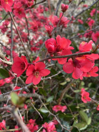 もう一つ小川町海東には有名な神仏習合の仏堂がある。舞鴫文殊堂(もうしぎ もんじゅどう) へ行ってきた。階段を上るのがが大変で歳を感じる。小銭の持ち合わせがなくておみくじをひけなかったのは残念だった。県外からも受験生が沢山やってきている様子で、絵馬には◎◎大学合格しますように!。助産婦試験合格しますように!。と名前を書いて奉納してあった。この春神様は願いを聞いてくれるとよいね。・・それからついでにもっと上の峠の岩清水(水の駅とある)を見学に。既に水くみの客人が数名居たので近寄らず公園から写真を撮った。美味い水なのだろうか。こんどペットボトルを持参してみよう。標高265mに噴出する湧水で1回100円以上の寄付をとの張り紙があった。我が山小屋の塩井社湧水と珈琲を湧かして比較したくなった。・・で、肝心の我が実家についたのは4時頃で30分空気の入れ替えをしたら帰る時間に。小川の庭は今木瓜の花が満開で、いつもこんなに広げて咲いているのかとおもうほど、枝が広がっていた。ちょっと二枝を切って持ち帰る。慌ただしい一日になった。いつもの如く目はシュパシュパ、鼻水タラーリ! |