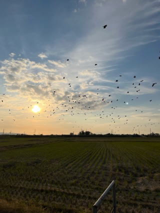 | 2022/10/31月 | ついに月末、KSNだより11月号の期限になった。朝から気になっていたがなかなか進まず、一度外出し、注文を持参しての帰りに、クマデンにてQSLカードを数枚送る。ついでに頼まれた支払いをコンビニにて済ませた。自宅へ帰り着いたらもう4時・・慌てて散歩に出掛けた。夕陽の手前を沢山の鳥が通り抜けた。今日の歩数は久しぶりに6000歩を超えた。帰ると猫のハナが階段から駆け下りてくる。抱っこしての庭周りの散歩。皇帝ダリアが高く伸びているのが気になるらしく猫の手を添えると放さない。上を見上げて今から登るぞという態勢になるので引き離そうとするが爪を立てているのでなかなか大変。なんとかなだめ、脇をこちょこちょして離れた。 |