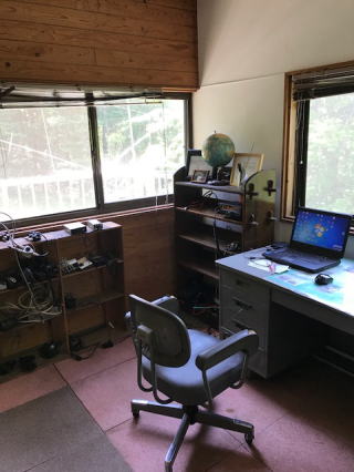<趣味>西原村の山小屋の私の趣味の部屋(無線室)が再開・・ いつも居間で無線をするとき耳にヘッドホン、そしてひそひそ声で喋っていた。時にはバックでフルートの音が襲ってくる. そんな時には、ひたすら電信に集中して、声など出せる訳もなく・・やっと帰ってきた我が部屋。問題は蚊が多いこと、どこかに出入り口があるのだろう、さきほど一匹叩きつぶしたところだ。蚊取り人間の役目をしている。 今夜は風呂上がりに岩手と長野小諸市の2局と交信。14Mhzで22時過ぎにアラブ首長国連邦からの電波が強く届が呼べど呼べど届かず。あああアンテナが低すぎる。 ・・と嘆きながらも23:13スロベニアのS52V (ブランコさん)と交信成功。相手はICOMの無線機と自作アンプ、6エレ八木。凄い! ・・夜遅くまで今日は14Mhzのコンディションはよいまま。。西原村の森の中の夜は暮れていく。足が痒い。また蚊に刺されたみたいだ。 |