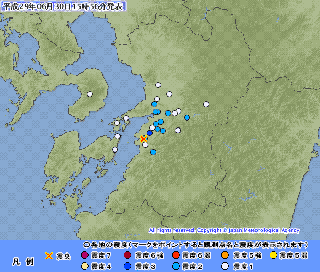 ![]() <地震>21時45分頃 伊豆大島近海 M2.9 震度1 21時39分頃 茨城県沖 M3.2 震度1 18時13分頃 長野県南部 M2.8 震度2 12時40分頃 福島県中通り M3.0 震度1 11時56分頃 福島県中通り M2.9 震度1 07時23分頃 福島県中通り M2.7 震度1 05時51分頃 福島県中通り M4.4 震度3 01時23分頃 栃木県南部 M3.9 震度 |
