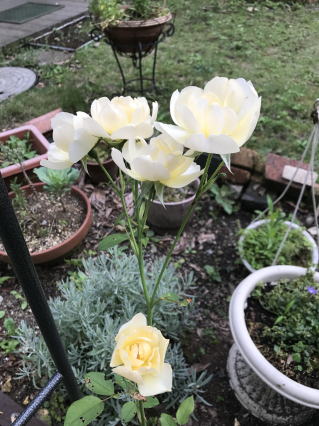 山小屋は予定なし。お客様なし。私だけのんびりしている。昨日からのコンテスト(6m&DOWNコンテスト)の続きを時々やっている。これは午後9時までだから・・10局稼げればもういいかな。。って妥協・・庭に昨日の4兄弟に加えて妹も咲いた。一気に咲いたらすごく見栄えがよい。そりゃバラバラに咲くのが薔薇は普通。一気に咲いてしばらくすると、一気に散ってしまうのもまた優雅だ。都議選のように。 |