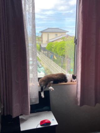 | 2021/06/01火 | 今日も晴天そのうえに暑い。もう30度は遙かに超えているだろうか。1Fギャラリーは自然のクーラーの様だが、2Fは暑い。そういえば今年は蛍を観ていないがまだ飛んでいるだろうか。蛍観賞の帳面消しをしてないような気がする。先日の愛猫ハナの布団干しが今日も続いている。反省のないハナ。外へ出してくれないから、またやるよって威張って宣言しているような態度だ。頼むからシッコはトイレでね。(^_-) 猫は日々探索しているので涼しいところをよく知っている様子。時々友達、時々知らんぷりが続いている。 |