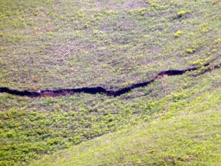 | 5月2日(月) | ![]() 晴天に誘われて今日も西原村の山小屋の後片付けにいく。片付けに飽きた頃、山道を散策。萌の里の先の道路も通行止め。もちろん手前の大切畑の道路も完全に通行不可能。その先の道路には中央白線から段差ができていて車は通れそうもない。 この先は俵山トンネル方向へ続く。山には亀裂が幾つか走っているが、これは深層崩壊に繋がり、・・小高い草原には横に亀裂が走っている。こりゃ やばいぞ ずるって表皮がむけたら表層崩壊に繋がるのか、地学素人には訳分からないが山、道路、池、建物、全てに亀裂が入っている大地震がこの地であったことを示す造形だ。明日は雨が降る・・・しばらく近づけない。様子を遠くから眺めるしかない。うまく亀裂が固まって、予想を裏切ってほしいものだ。 (いずれも2016年5月2日 萌の里周囲での撮影) ![]() ←遠景と近景 → |