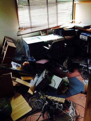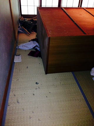 <2016年4月16日未明の地震で私が寝ていたはずの部屋・・タンスがごろり>