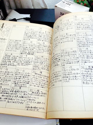父の30年前の日記孫の面倒をみに水俣往復していた父母の暮らしがよく分かる。 1984年、5年の2年分だけ持ち帰ってきた。まさかそれを震災を機に気づいた子に私的日記を見られているとは天国で苦笑いしているかもしれない。 寝転んで見る。 活断層の上に暮らしている心配は一言もなく、台風や大雨の心配ばかりが綴られていた。あの頃はそんなこと知らなくて済んだ時代だったのだ。 知りすぎた私たちは、次はどこに住んで良いのか(未知の活断層もあって) 見当がつかない。 |
