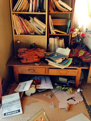 | 5月5日(木) | 晴天。今日は強力な助っ人家族が山小屋に来てくれた。怪力のSさんと一緒にタンスを起こすと、命拾いした場所に3週間ぶりに畳がある。山小屋レスキューも無事終わり。明日は雨が降り、山の亀裂がまた心配に。 先日の風で長いビニールシートは外れたり、ひっくりくり返っているところ がほとんど。だから素人工事はダメなのだ。土嚢追加をして少しはましになったようである。(また晴天時に確認が必要) <空っぽになった展示棚> スチール製の棚は倒れなかった。川口君の作品はすべて回収してきた。 それとKさんの髪飾りは先週健康友の会経由で作品は作者の手元に帰ったようで安心した。 窯から買った陶器類はほぼ全滅・・たいへんな損失だが仕方ない。 借りた作品に被害がなかったのは幸いだった。 下界に帰ってきて少し安 心して梅酒を飲む。ほろ酔い気分に地震情報、阿蘇でまた震度4か。今日は阿蘇は揺れの多い日だ。これが何度も続くことによる火山活動に影響ないこと祈る。 揺れに加えて火山噴火などあれば、復旧は足止めされる。そうならないための頼みの「阿蘇神社」も倒壊してしまっている。どこに祈ればいいのやら。 |