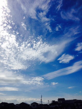 | 2016/9/5(月) | 台風12号殆ど影響なく通り過ぎた。朝から青空だ。今日も暑いだろう。今朝は小川付近を震源に震度1があったみたいだが(M2.2)小さくて熊本までは揺れてない。これから孫の散歩に付き合う・・体力勝負だ。 やはり大変だった、水たまりでしゃがみ込んだり、濡れた滑り台で指を舐めたり、あらぬ方角へ行こうとしたり、帰りはズボンビシャビジャ、足も手も砂だらけの悲惨な散歩、〆は抱きかかえての帰宅。空だけは芸術品が揃っていて、全てが地震雲なのだろうかと疑いながらパシャパシャ撮影。 <地震>午後8時半現在・・ 午前5時6分の震度1の1回きりだ。増えたり減ったり様子見の頃だろうか。その後午後8時55分近所で震度2.ゴーという音と共に我が家も少し揺れた。(M3.1) <写真> 3枚とも今朝10時頃の空。いかにも地震雲と紹介されている形態のものが出そろっていた感じ。ホントに予報が出来たらスゴイ・・もし震災を経験してなかったら単純に、いつもの秋の空という想いで眺めただろう。今日も曰くを付けたがる爺さん日記に成り下がったかな |