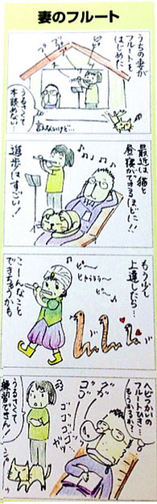| 2016/8/22(月) | 孫の相手してると時間の経つのが早いこと。昼寝で寝かせるのに失敗して、炎天下に散歩に連れ出した。夜は8時半には寝かせた。明日こそ娘は退院になるだろう。でも安静なので爺婆の出番変わらずかな。今日は、朝11時西原村商工会で手続き。帰り道にT事務所へ。ここで新聞の校正、今日が最後だ。私は何もしてない。殆ど事務局でやって貰っているので楽ちん。右端は我が家をいつも嘲笑の種にしょうと目論んでいるUK画伯の4コマ、今週出来上がるT会だよりに載る。まさにその通りだが・・婆さんにはナイショにしておいてと釘をさされたのであえて公開。きっと婆さんは気づかないはずだ。 昼間は暑かったが夜になると涼しい風が吹く。だが長続きはしない。台風の風、ちょっと弱いぞとしかる。本気になって寄って来られると困るのだが・・ 明日も37度と天気予報は言っていた。 孫中心の生活はそろそろ飽きた。ご飯を食べ残しているので我が家の猫が摂食指導に乗り出した。その途端に孫は「俺のご飯が」と今頃、権利意識を取り戻すものの・・もう手遅れで猫に献上。 <地震>熊本は震度1と2があった。2回と少ないが入院中の娘からドスンと揺れたとメールがあった。妊婦には地震はいらない。 他に三陸沖と宮城沖で震度3や2があった。最近東北が多い。台風被害も出ているようだ。 |