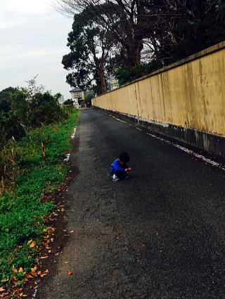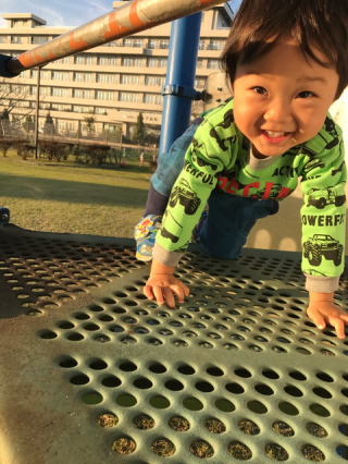 | 2016/11/18(金) | 朝から生ゴミを捨てにいってそのまま散歩に出掛けた。今にも雨が降りそうな天候だった。途中の道路で孫はマイペース・・往来の真ん中で木の実を拾い始めて座り込むなど、公園になかなかたどり着かない。・・行きはよいよい帰りは小雨・・木部公園(右)でいっぱい遊んで帰ってきた。途中抱っこの試練を乗り越えて、我が家に帰り着くと「さっき福岡で震度3があったてよ」と娘が伝えるので、慌てて気象庁HPで確認・・ すると、10時19分頃