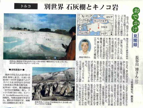 | 2016/12/09(金) | / どんよりと曇った日だ。部屋の中でじっとしていると寒い・・それでも15度C.時々雲の間から太陽が覗く。午前0時台までトカラ列島の揺れが続いていた。7時37分熊本(嘉島)で震度1。/昨日はゼロだった。孫不在は明日まで・・僅かな貴重な時間を自分だけのために使わなきゃ! 熊日の読者のひろばの担当者から電話とFAXがきて書く人がいないので書いてくれと頼まれて投稿した「おでかけ見聞録」。本日夕刊で私のトルコ旅行が出た。2日前に今日載るからと連絡あったけど、我が家は朝刊だけしかとっていない。友だちと会って帰る途中でガソリン給油。そのスタンドに併設されているセブンイレブンで目当ての夕刊があったので買ったが、120円と高い。朝刊とセットなら月契約で+367円増えるだけなのに。この薄い 僅か6Pの単体で朝刊の価格と同じなのだ。お粗末な文に加えて同じくお粗末な顔写真まで入っているのでご近所にバレてしまうかもしれない。困ったなあ。 図書券のためと割り切ろう。 <地震> トカラ列島の連続揺れは午前0時台で終わって、北海道、福島沖、鳥取、熊本などの通常の揺れに戻った様子だ。 |