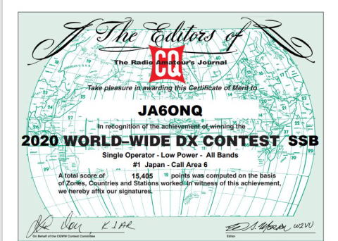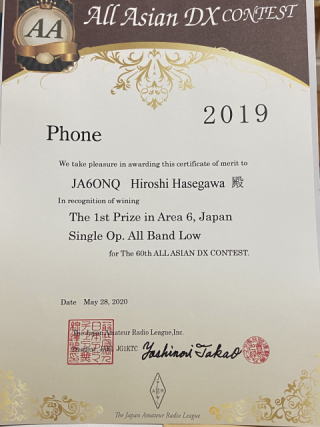| 2020年 WW-SSB コンテストで九州で1番 2019年 WW-SSB コンテストで九州2番 |