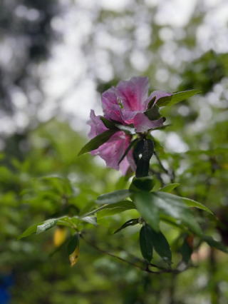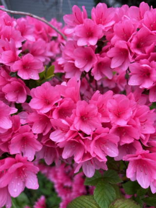 震災屋根瓦の並ぶ、庭の片隅にツツジが綺麗に咲いた。