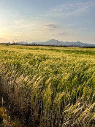 夕刻の散歩時に麦畑に気づく。ここに植えてあったのかと・金峰山が夕陽に映えてよく見えていた。明日は天気は下り坂との予報だ。5373歩。花粉症は相変わらず鼻ずるずる。背中が重い日が続く。寝転んで休憩するべき時期かもしれない。周りには元気な人が多すぎて、ついそれを追って仕舞いがちになって無理をする。もう若くないのだという自覚が時々自嘲を招く。出来たしこでゆこう。無理する必要もなく合わぬ事は断るばかり。