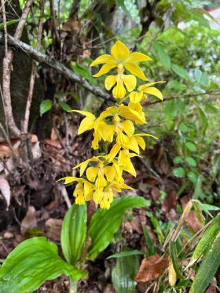 2023/04/14金   庭の桜の木の根元にある黄色いエビネ蘭の花が満開だ。裏山は先週開いていたが、色がピンクや白で黄色いのは今年はこれ1本のようだ。来年もこの季節はエビネが咲き誇るかな。その手前のモミジの葉っぱは新緑がとても鮮やかだ。今日14日は7年前の熊本地震前震の日、午後9時半だったか、あのときは南区の我が家で体験。テレビが飛ばされて昇天したのだった。被害はそのくらいで翌日15日が金曜日で山小屋への出勤日、山はどうだろうと到着して店内を点検しても何も被害がなくて安心したのだった。ところが、同伴予定の愛猫ハナ(23歳)が前震のあと逃げ出していて、腹を空かしていると可哀想だということで・・  ・・ご主人様の提案で下界へ帰り、明日また猫同伴でくればよいと、帰宅後3時間後に16日の本震を迎えたのだった。その本震のすごさは忘れることは出来ない。木造住宅がミシミシとうなり、1Fではガラスの割れる音が家中に響いた。地震直後は動けない、何度も余震のある中、準備した懐中電灯を点して階段を降りると、床全体に水が揺れていた。前日、また地震が来たらトイレを流せないと風呂に一杯水を溜めていたから。。それがゆっさゆっさと揺さぶられて、リビングまで水が移動していたのだった。教訓・・風呂に水を溜めるなら半分まで、それとスリッパは必需品、割れたガラスを踏み込むと大けがをすることに注意。それと携帯はいつも充電しておくこと。 あさってが本震7年目。、新しいフォルダーにweb日記は更新される予定。 今日は肌寒い雨の一日だった。