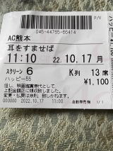 | 2022/10/17月 | 今日は雨でつまらないと朝から久しぶりに嘉島のイオンモールへ出掛けた。目的は映画見物。コロナ禍になって3回目くらいだろうか。気になる映画の宣伝に踊らされて若者向けの『耳をすませば』っていうアニメ映画の続き・・夢を叶えただろうかという実写版・・まあまあ面白かった。映画館の広い会場に6人程度。こりゃあ赤字だなと思った。自分自身専らAMAZONプライムの無料映画(プライム料金払っているから無料ではないが)だからまあそんなもんだ。それにしても小説家志望の女にチェロ奏者の男がいる日本・イタリアの遠距離恋愛って大変だ。劇の中の楽器演奏って本人がホントにやってるのだろうか。凄いなあ。 |