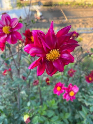 おまえはダリや?・・赤いのはだりや って熊本弁で聞いても返事がない。毎日の田園散歩の途上には色んな花が咲いている。すっかり稲穂は刈られて、もう既に新米として口に入って居る頃だろう。我が家に来るのはまだ先のこと。今日少しでも文化祭のHPを充実させようと頑張ったが、散歩のあとは風呂にはいって、ホット梅酒を飲んで頭が少しゆらりゆらりとして来た頃になるとすっかりその気が失せてしまっている。KSNだよりも同時進行なので11月号がうまく出せるかも心配になる24日あと1週間しか猶予がない。文化祭も2週間後。さてさてうまくいきますように! |