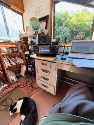 | 2022/10/29土 | 今日は朝からアマチュア無線の世界的コンテストWWDXコンテストに参加。なかなか弱い電波を取ってくれない。これは毎回同じだが、無線歴54年、中学生から続けている趣味。還暦退職してからはコンテストが楽しみになってちょっとしたコンテストには参加している。この貧弱な森の中の木の枝にひっかけたワイヤーアンテナと木に囲まれたところにある高さ5mのV型アンテナ。こんなので参加している人は世界を探してもいないのかも。で、今日はアフリカもマダガスカルも聞こえていた。呼ぶけど届かない、マダガスカルはJA6ONまで取ってくれたあとフェードアウト。残念!!。今日は頑張ったが60局どまり。明日は予約あって無線どころではないかも。 |