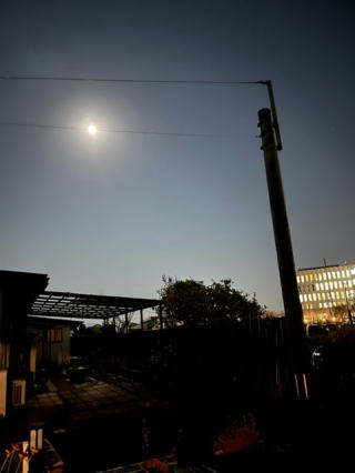 病院に行く途上健康友の会でビデオ編集でお世話になった人にお礼に特製焼酎を持参。病院の夜診は結構込んでいた。その待ち時間の苦行のあとは薬を薬局で貰い、気が楽になった。明日が満月か帰り道の月が明るくて、秋のヒヤリちする空気は身が引き締まる。信号の先に見える月はやっぱり他所の月で、自宅から見上げる月こそ本物の月のように感じる。これは俳句手はどう表現するのだろう。秋の月 思い出すのは 二畳の間 ・・反ってガヤガヤしていたなあ。そんな都会で一人暮らしして居た頃の数少ない友らが今は遠くの月に住んでいるような。互いの記憶もフェードアウトしてゆくのだろうか。 |