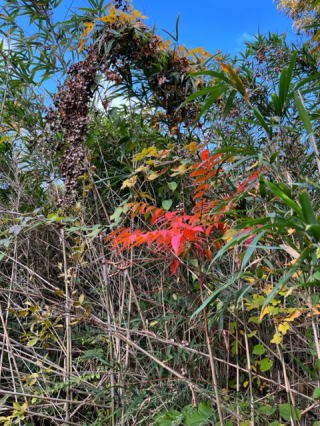 | 2022/11/11金 | 今日は寒くないだけで落ち葉がいっぱい。ここまで来る登り路はいよいよ赤い色が付き始めた。裏山へ散歩に出掛けると下の原っぱからドドッと走り抜ける音、藪の中でお尻だけみせて入り込む姿。あれはウリ坊かも。一匹だけの散歩だったのかも。親が近くに居ないか心配しながらも予定通りのコースで歩く。相変わらずむかご探しながら。一度は取った場所でも結構残っていた。明日はもし暇があったらまた同じコースで左右に目を振りながら探してみよう。夜フロ上がり、文化祭も終わってやっとのんびりできる。今夜はZoomでお空のミィーティングだ。 |