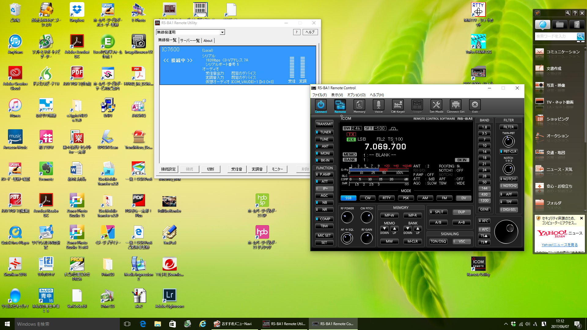 <趣味>50MhzのSSBで沖縄と、それと電信で北海道との交信。その後隣室からパソコン経由でのリモート操作の実験。ノイズ対策がうまくいかない。送受可能だがまだ実用には遠い。隣の机においてCWの自動送信は役に立ちそうだ。室内ネットワークでも若干遅延する。実際の遠隔操作ではまだまだ課題がありそう。 |