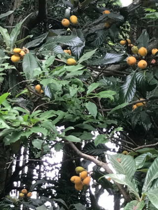 下の枇杷の木に黄色い実が沢山なった。毎年、小さいのがなって気づくと落ちていることが多くて今年初めて大量の枇杷の実をちぎった。食べてみると甘いが種が多い。 枇杷の料理って何かあるかな・