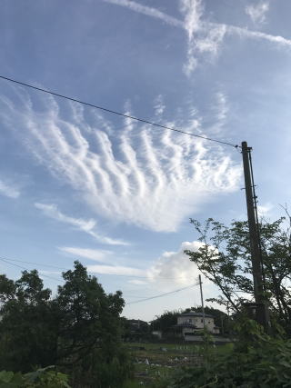 | 2017/06/29(木) | 今日は頼まれたHPの仮設工事に1日手を取られていた。夕方17時頃には、ちょっときつい。QandAなんて手打ちだから、ちょっと疲れてしまう。それとファイル名と取り違えて、作ったファイルを上書きしたり・・もう どうしょうもない徒労の一日であった。そんな締めくくりに、田圃道を散歩に出たら老犬ベティに出会った。まだ奴は生きている。暑い暑いと言いながら、老犬らしいゆっくりした歩調で歩いていた。空には 久しぶりに珍しい雲が流れていた。 |