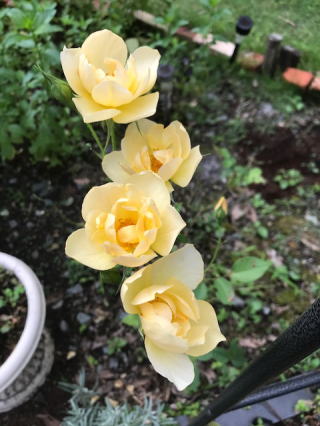 山小屋は予定なし。お客様なし。私だけのんびりしている。昨日からのコンテスト(6m&DOWNコンテスト)の続きを時々やっている。これは午後9時までだから・・10局稼げればもういいかな。。って妥協・・庭に昨日の4兄弟に加えて妹も咲いた。一気に咲いたらすごく見栄えがよい。そりゃバラバラに咲くのが薔薇は普通。一気に咲いてしばらくすると、一気に散ってしまうのもまた優雅だ。都議選のように。 |